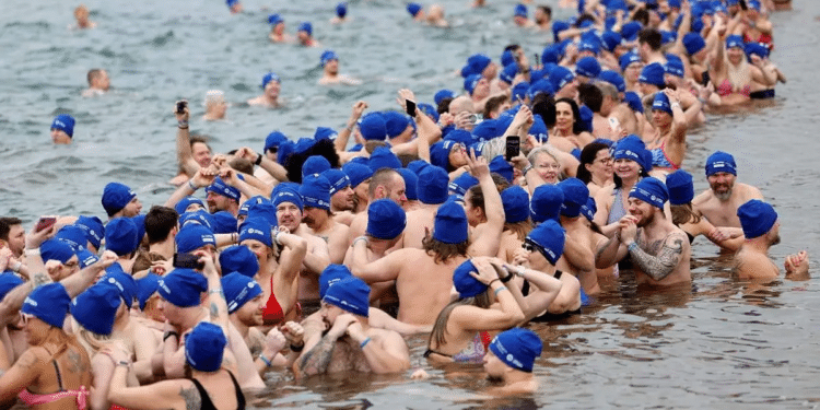 Rompen record Guinness al bañarse en aguas bajo cero